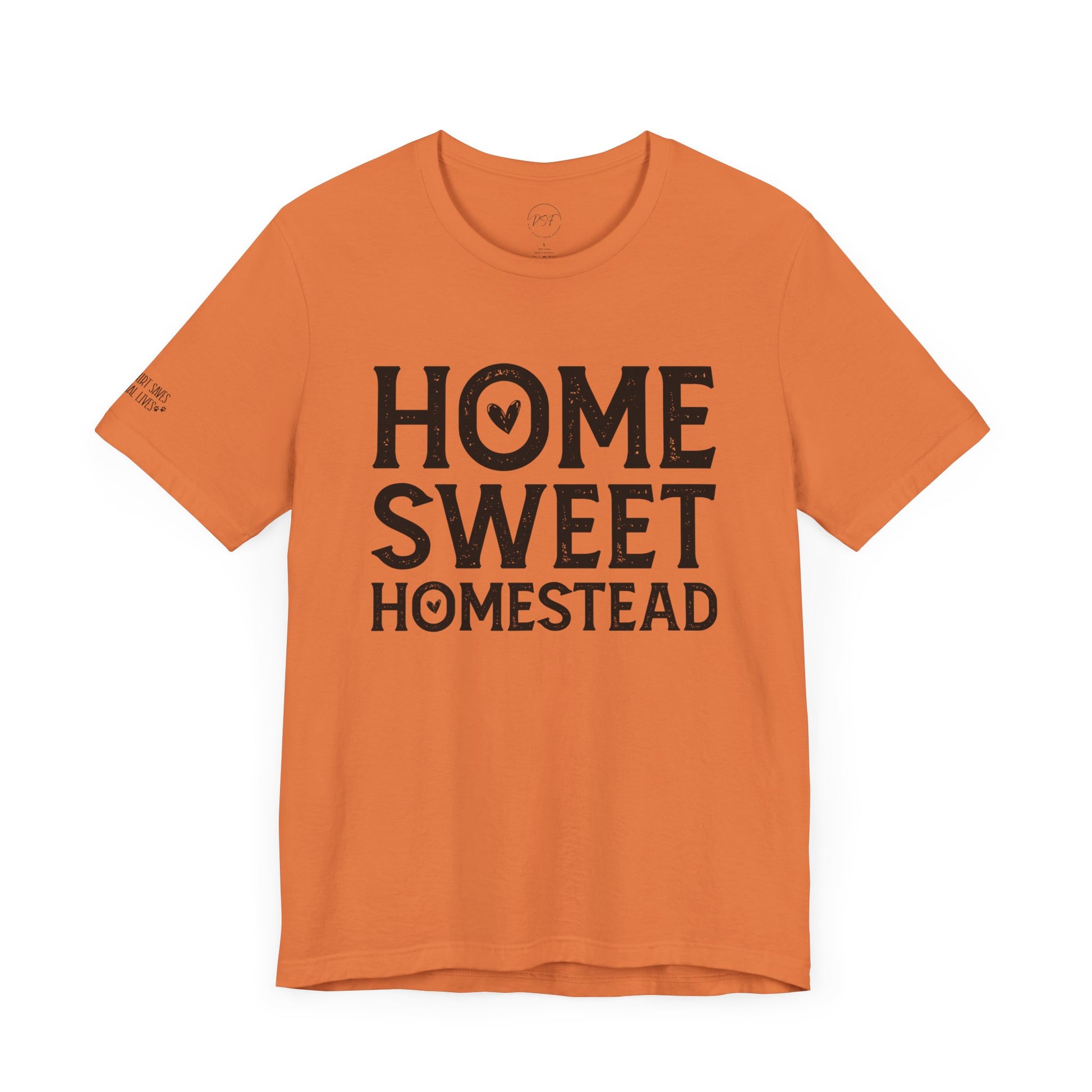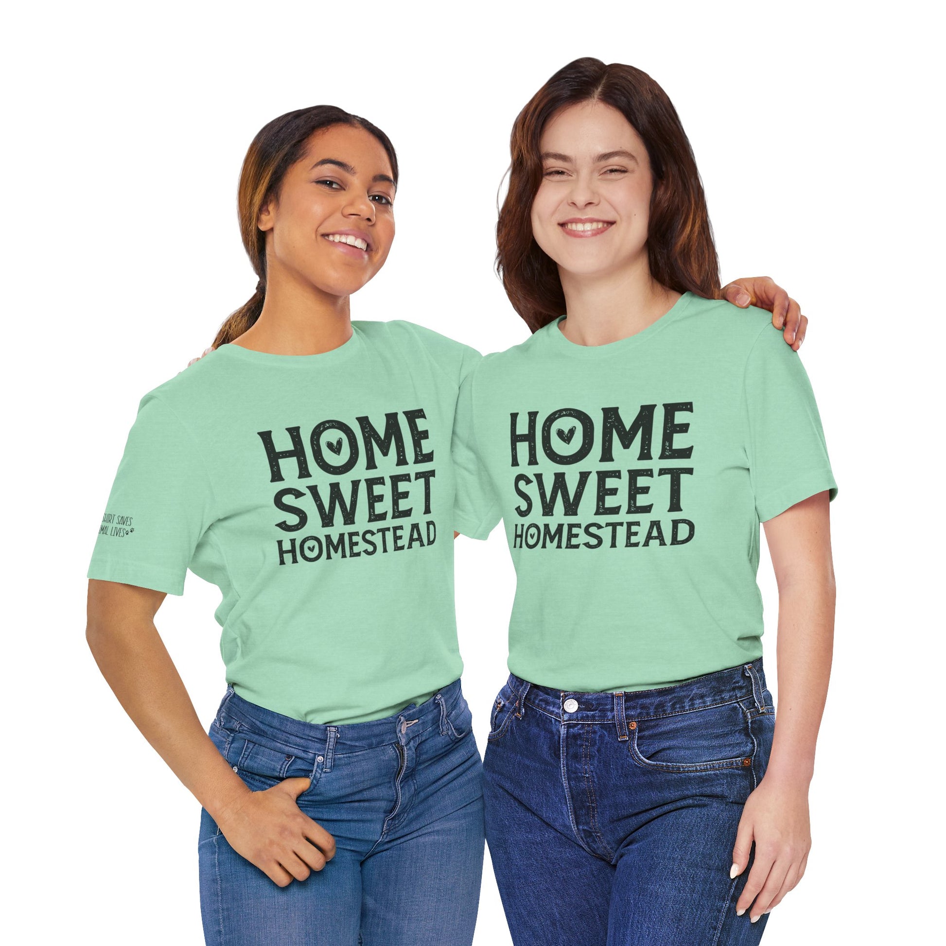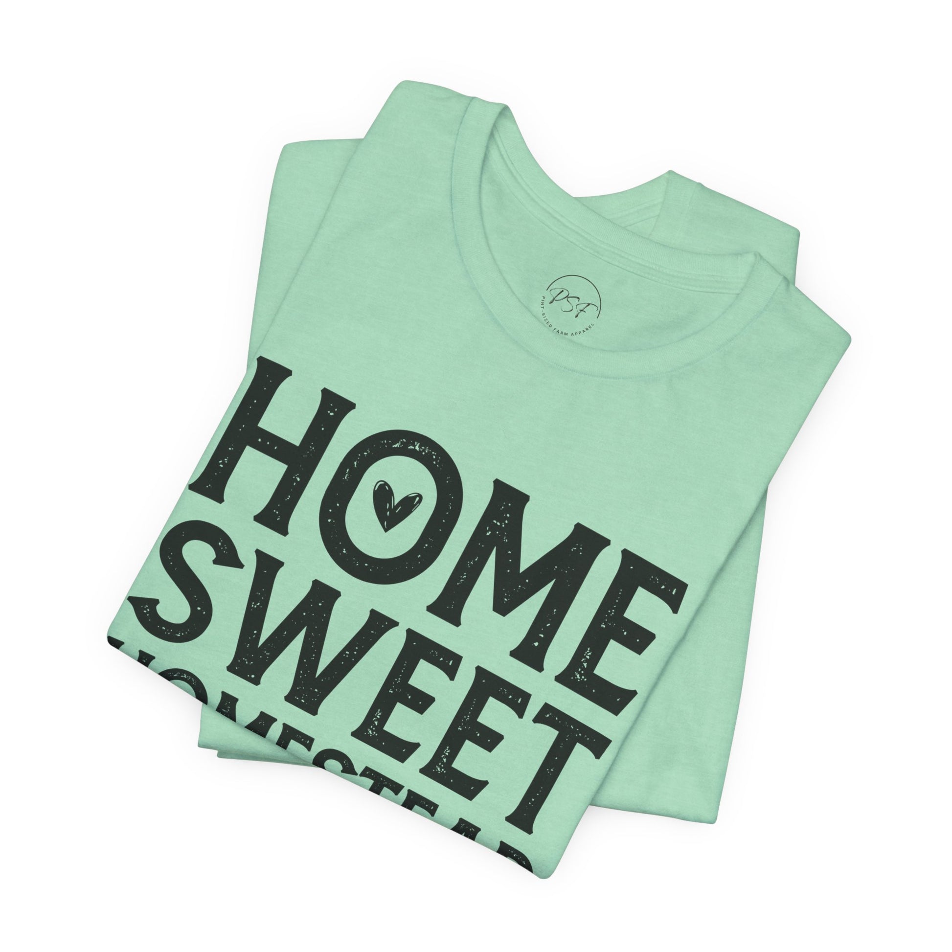 Introducing this cozy Unisex Jersey Short Sleeve Tee, perfect for those who appreciate comfort and style. With a charming "Home Sweet Homestead" design, this tee evokes a warm, inviting atmosphere, making it a wonderful addition to any casual wardrobe. Ideal for both lounging at home or stepping out for casual gatherings, it's a versatile piece for everyday wear. This tee is perfect for anyone who values homely vibes, making it an excellent gift for housewarming parties, family gatherings, or simply to celebrate the joy of home. Whether it’s for birthdays, holidays like Thanksgiving, or just to say 'I care', this shirt resonates with those who cherish comfort and a touch of rustic charm in their lives.