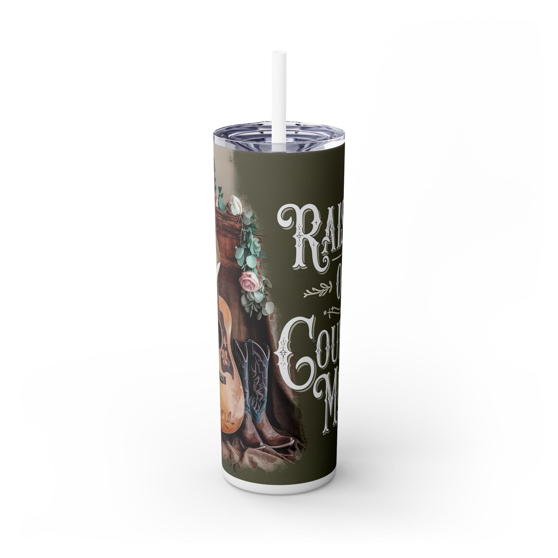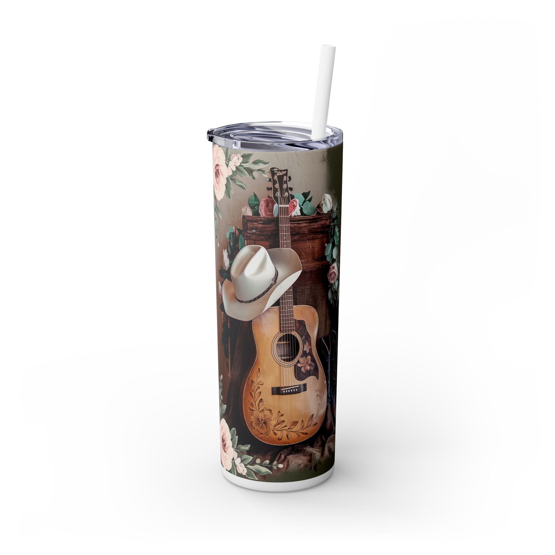 Stay stylish and hydrated with this vibrant Skinny Tumbler! Designed for those who embrace both functionality and flair, this 20oz tumbler is perfect for your everyday adventures. Whether you're commuting, working at your desk, or enjoying a sunny picnic, this tumbler keeps your drinks hot for up to 12 hours and cold for up to 24 hours. Its eye-catching design, featuring beautiful floral elements and rustic charm, brings a fun vibe to any setting. Ideal for country music lovers, nature enthusiasts, or anyone who appreciates unique art. This tumbler makes a thoughtful gift for birthdays, holidays, or even just to treat yourself! Hand wash only to preserve its stunning finish.